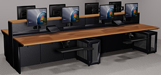 We work with end-users, building design firms, architects, and engineering firms to provide functional, user-friendly console workstations. Our portfolio includes numerous projects, mostly for mission-critical, command & control 24x7 operation centers. However, technical furniture can also be substituted in place of traditional office furniture. Call centers, customer service centers, & large open office areas have found the durability/flexibility/storage capacity of console furniture to be superior to office furniture.